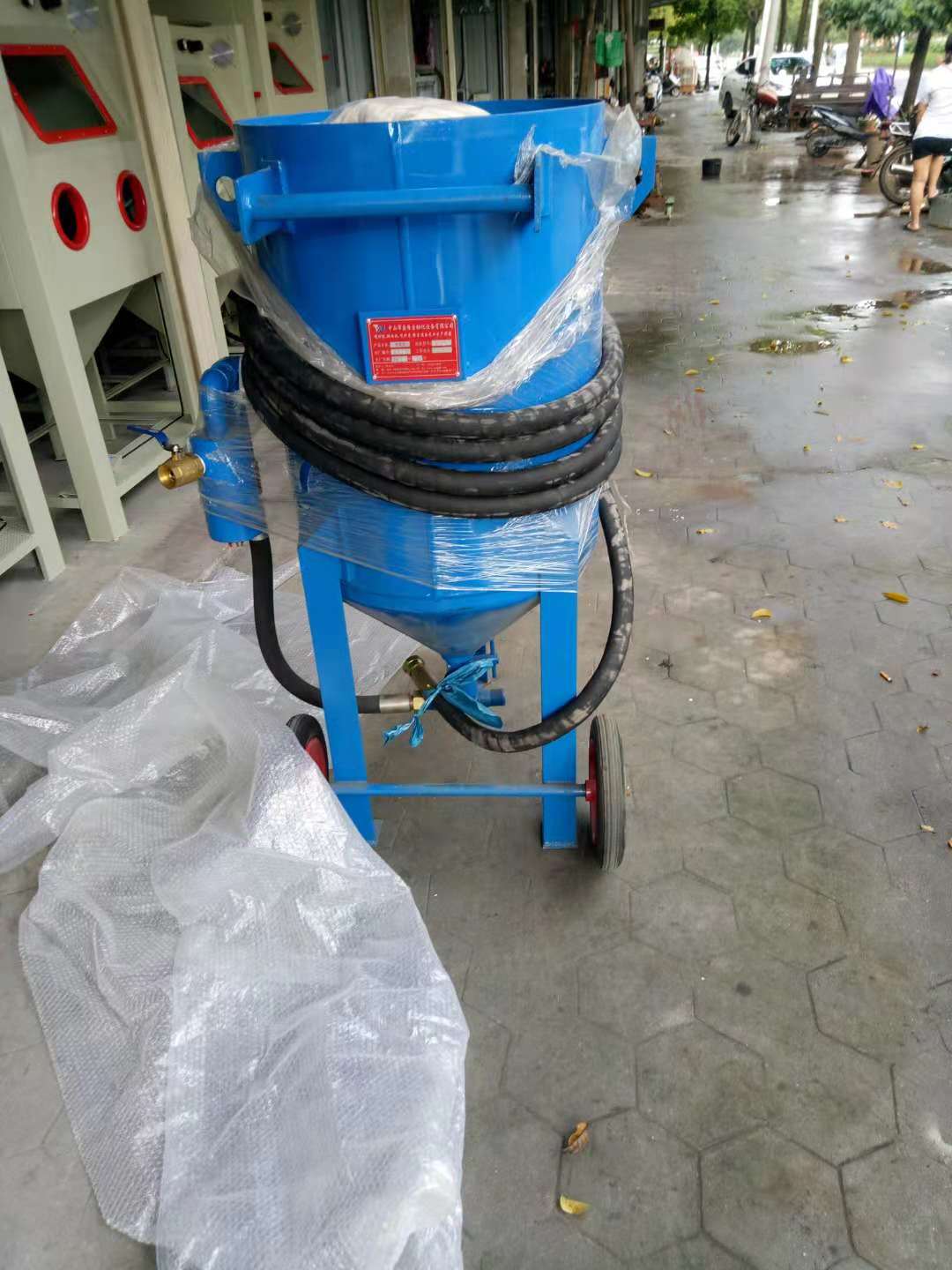 动行成高压作用,将高压罐内的砂料通过输砂管喷出,然后随压缩气流由喷枪嘴高速喷射到工件表面,达到喷砂加工的目的。