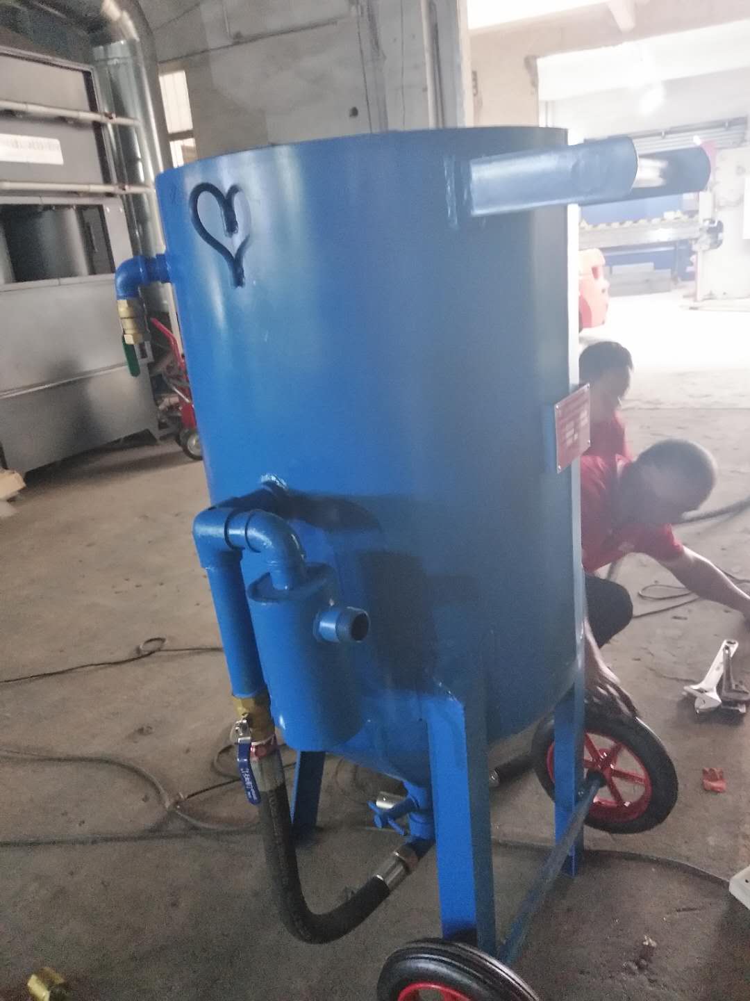 2、喷砂机设有1只喷枪,喷枪内配有10mm大的碳化硼喷嘴。